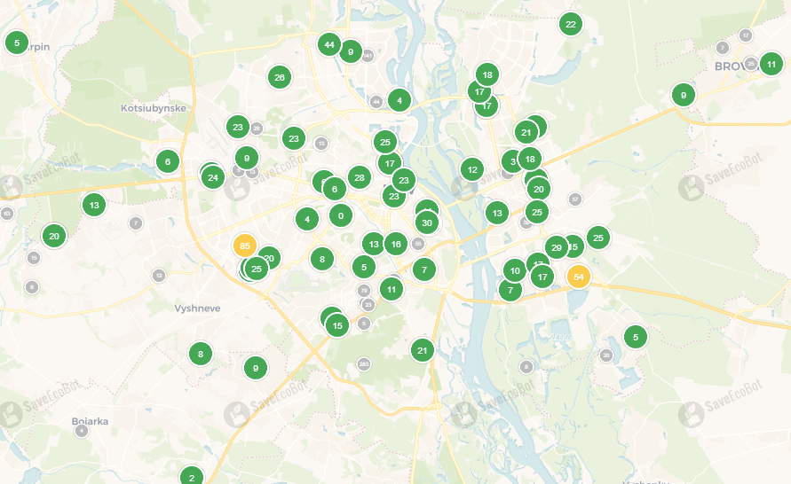 Схожа ситуація і в Києві. Повітря в столиці майже ідеальне. Лише у двох районах невелике перевищення, але воно не становить загрози навіть для чутливих людей.