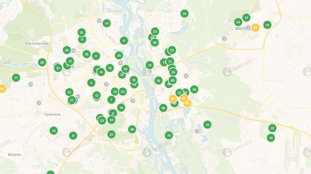 У Києві теж значне покращення ситуації. Повітря майже чисте — перевищення зафіксовані лише в Дарницькому районі столиці. Якщо знаходитесь у зоні легкого забруднення та відчуваєте дискомфорт під час дихання — використовуйте маски, які фільтрують дрібні частинки.
