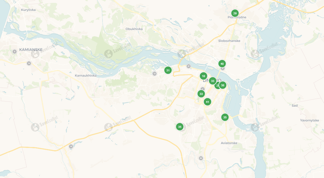 Сьогодні, 16 травня 2025 року, за даними сервісу SaveEcoBot, у Кам’янському та Дніпрі чисте повітря, жодних перевищень норми.
