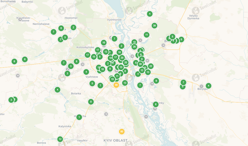 У Києві теж переважно чисте повітря. Лише в одному з районів, а також у передмісті столиці зафіксовано перевищення — воно незначне та не становить загрози для здоров’я.