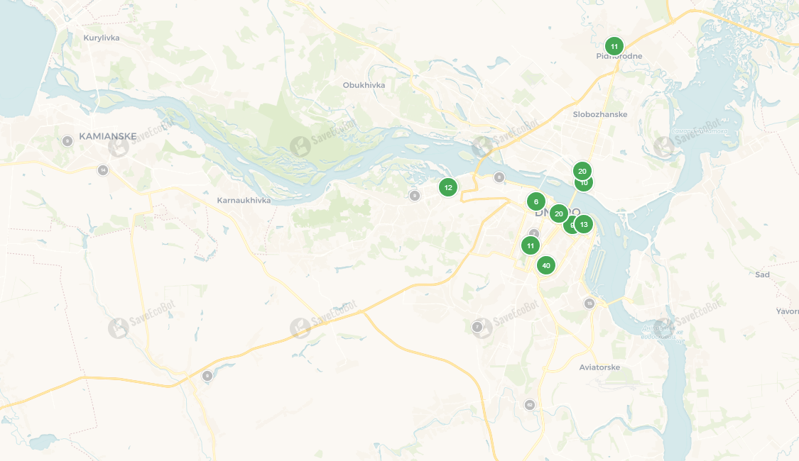 Сьогодні, 27 травня 2025 року, за даними сервісу SaveEcoBot, у Кам’янському та Дніпрі чисте повітря. Жодних перевищень, всі райони у зеленій зоні.
