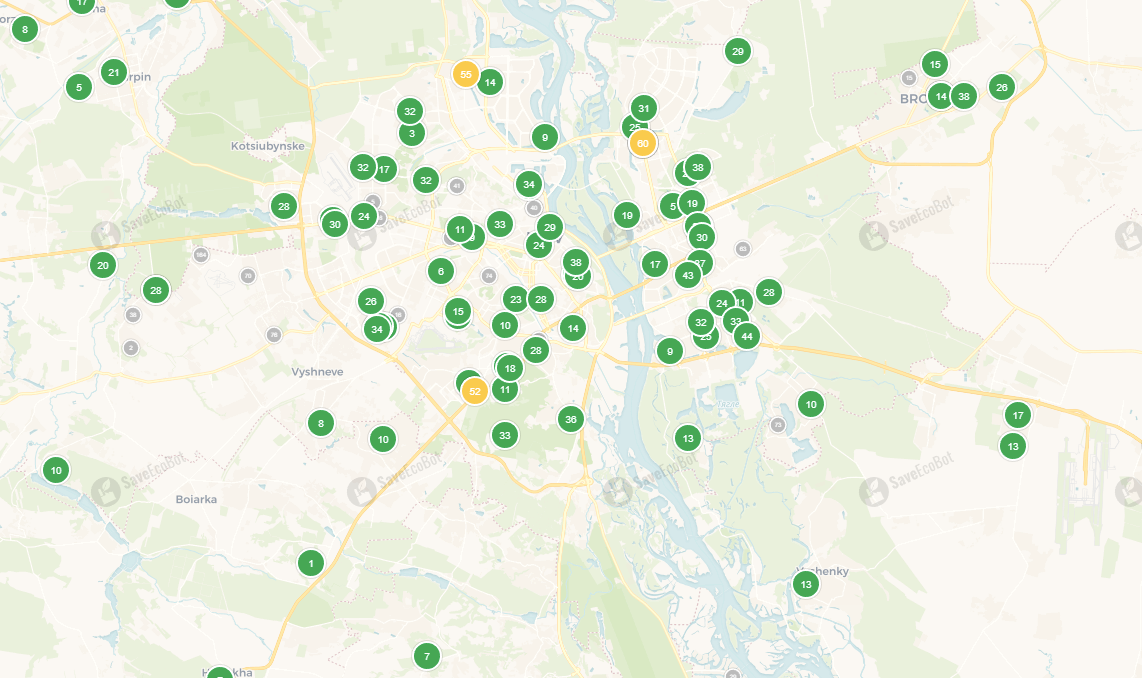 У Києві повітря переважно чисте, лише в деяких районах столиці невеликі перевищення норми, які не становлять загрози для здоров’я.