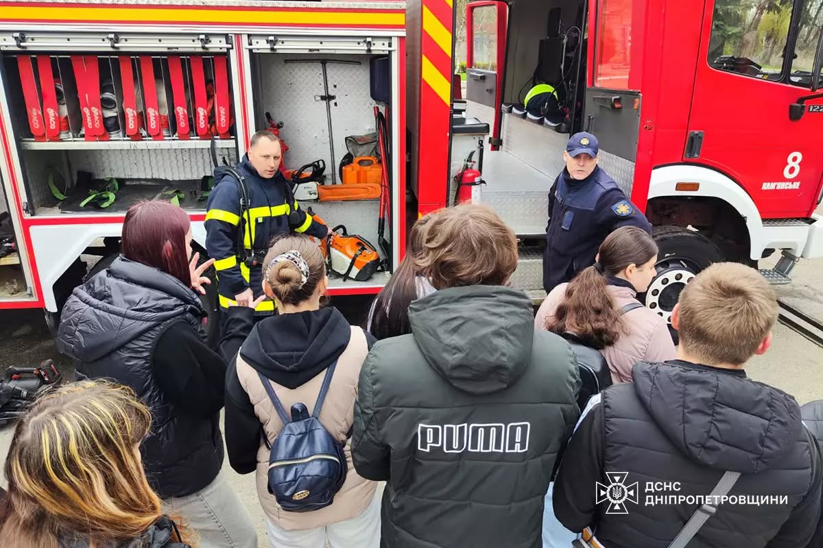 9 квітня надзвичайники Кам’янського району провели пізнавальну екскурсію для дев’ятикласників однієї з місцевих шкіл. Замість звичайного уроку учні отримали можливість на власні очі побачити роботу тих, хто першим приходить на допомогу в найскладніших ситуаціях, та дізнатися про тонкощі служби "101".