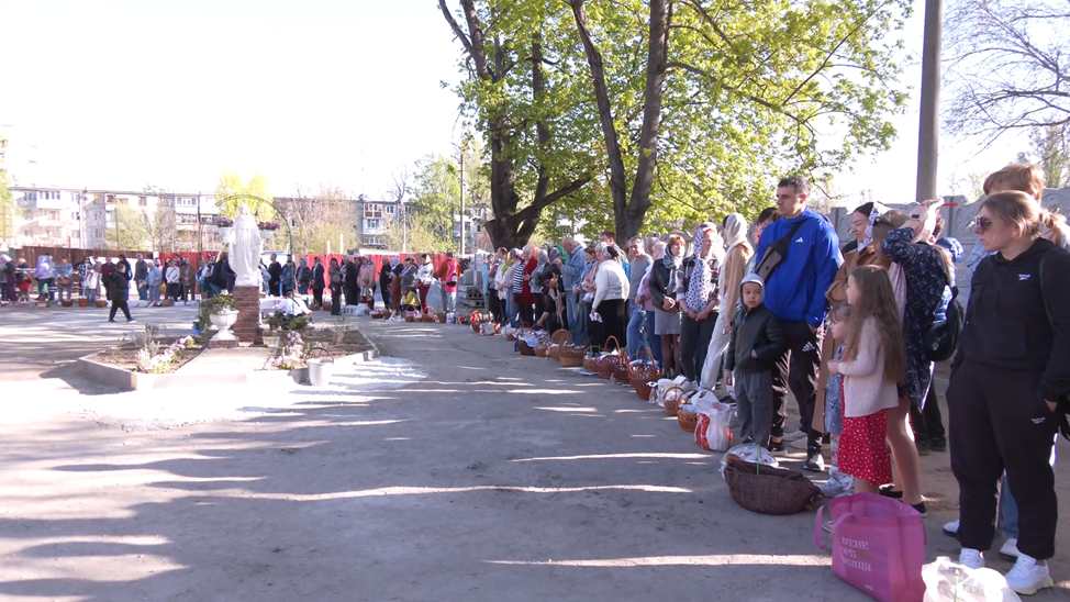 А Вже з самого ранку неділі біля церкви зібрались сотні містян із великодніми кошиками. Кожен ніс до храму щось особливе — з надією, що освячена їжа принесе в дім благословення. Для багатьох цей день — не лише церковне свято, а й можливість зібратися з родиною, згадати головні духовні цінності та поділитися святковим настроєм. Святкове освячення в храмі відбувалося у кілька етапів. Настоятель Козацької церкви, отець Феодосій, благословив парафіян.