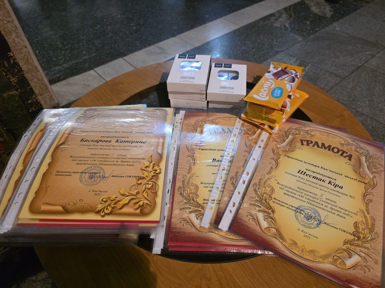 Переможці отримали не лише грамоти та солодкі подарунки, а й сертифікати у мережу магазинів “Akvarel”, щоб продовжувати розвивати свій талант. Особливу подяку організатори висловили викладачам, які надихають дітей на творчість, зокрема й Івану Харітонову, який нині захищає Україну в лавах ЗСУ.