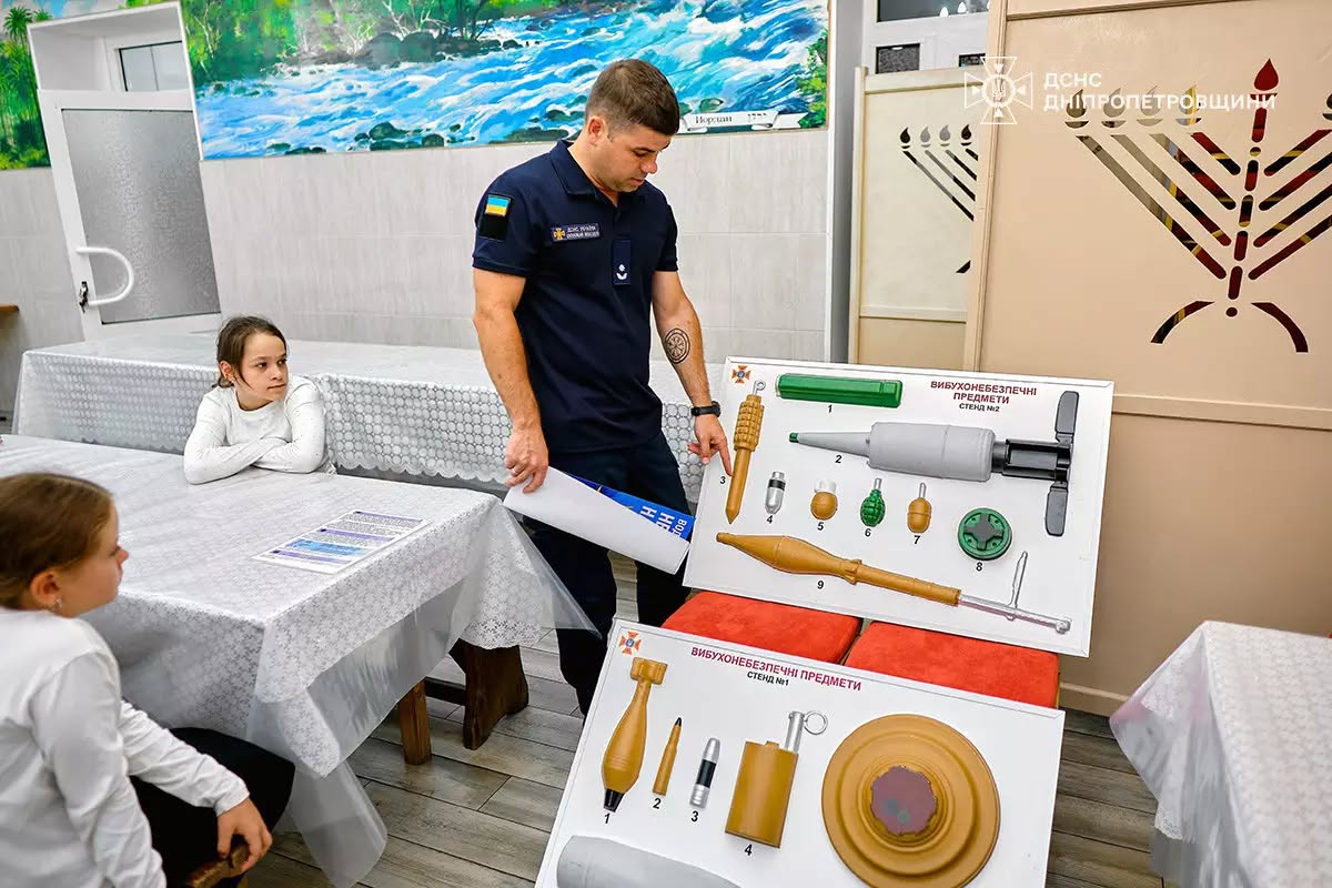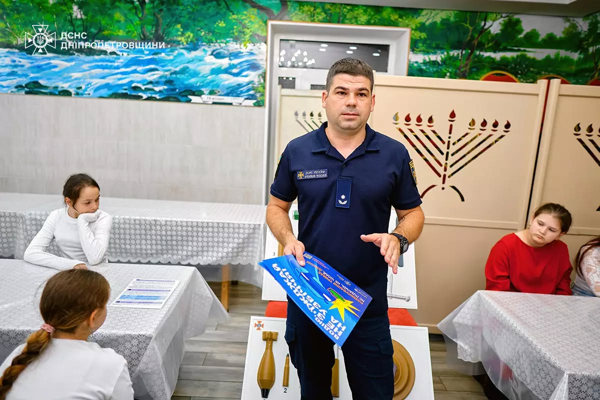 Офіцер-рятувальник Кам’янської міської територіальної громади відвідав приватний ліцей у Кам’янському, щоб навчити дітей основам мінної безпеки. Під час заняття він використав 3D-макети, щоб показати, як виглядають вибухонебезпечні предмети, та пояснив, як діяти у разі їх виявлення.