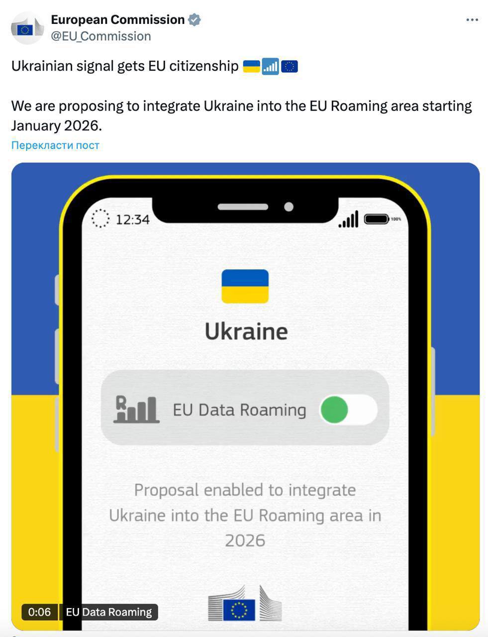 Україна стане першою країною поза ЄС, яка отримає доступ до програми Roam like at Home. Це стане можливим завдяки рішенню Єврокомісії про інтеграцію України до роумінгової зони ЄС.