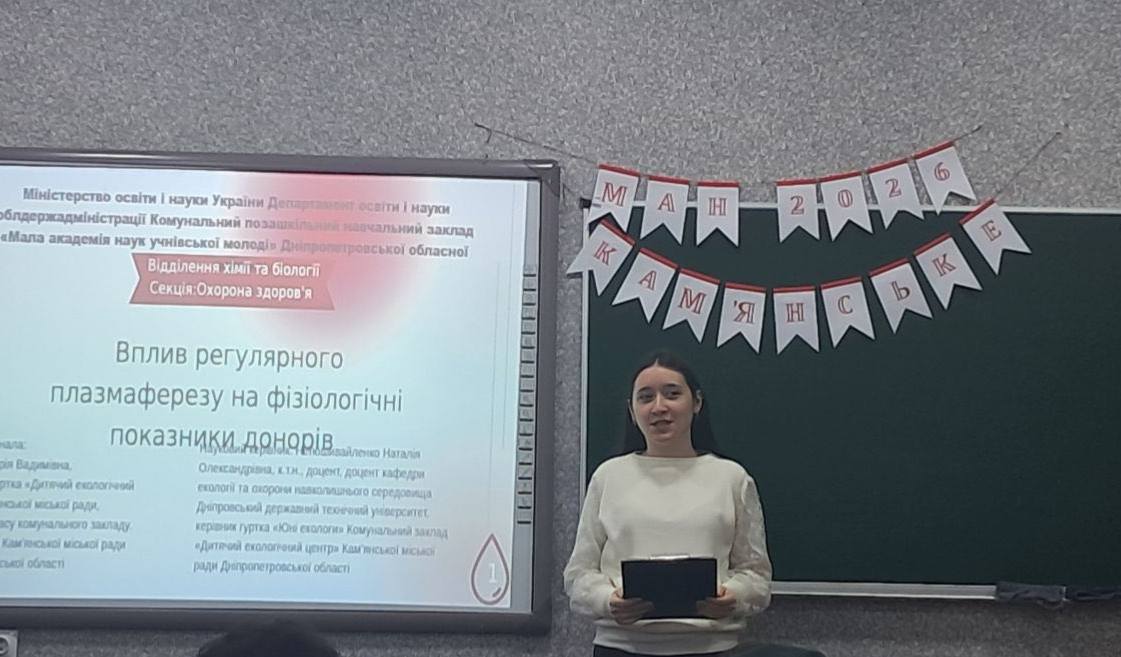 Наукова робота Дарії Неїченко не лише підтверджує безпечність та користь регулярного донорства плазми, а й демонструє, як сучасна молодь здатна вирішувати важливі медико-соціальні питання. Попереду у команди — наступний етап змагань: у березні 2026 року Дарія представлятиме Кам’янське на обласному рівні конкурсу МАН.