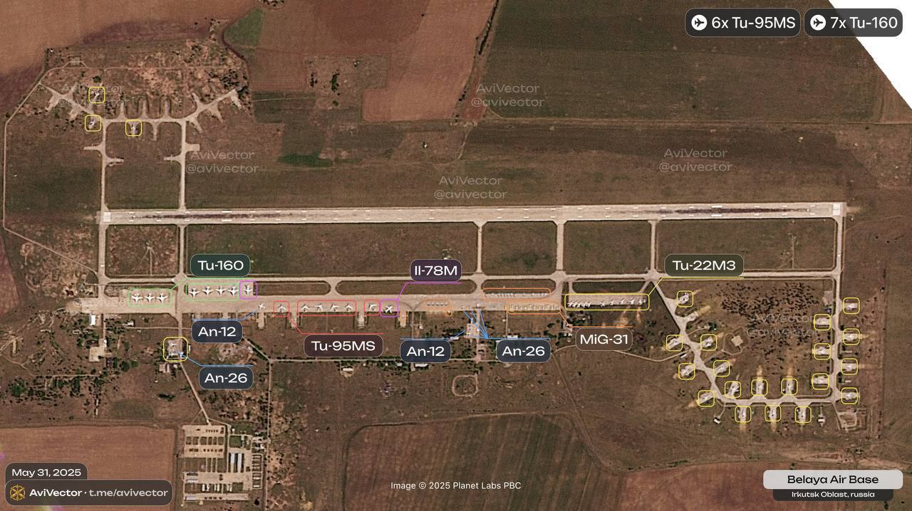 За попередньою інформацією вражені більше 40 літаків. Знищено всі 4 борти Ту-95МС, що знаходилися на авіабазі "Оленья". Також є влучання/знищення 3х бортів Ту-95МС та 2х Ту-160 на авіабазі "Бєлая". Інші цілі поки очікують підтвердження.