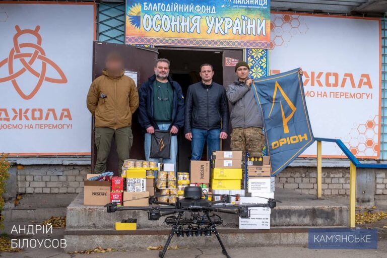 Мэр Каменского Андрей Белоусов вместе с руководителем благотворительного фонда "Осоння України" Александром Крутько передали дрон...