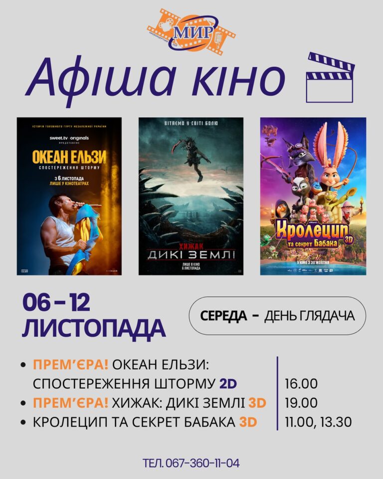 Уважаемые ценители кино! Приглашаем вас провести следующую неделю в уютной атмосфере Киноконцертного зала "МИР"! Вас ждет...