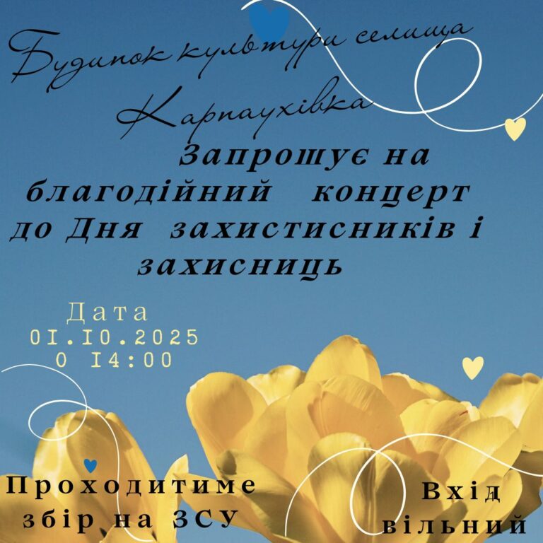 1 октября, в День защитников и защитниц Украины, Дом культуры поселка Карнауховка приглашает на благотворительный...