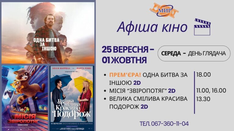 Афиша киноконцертного зала "МИР" с 25 сентября по 01 октября