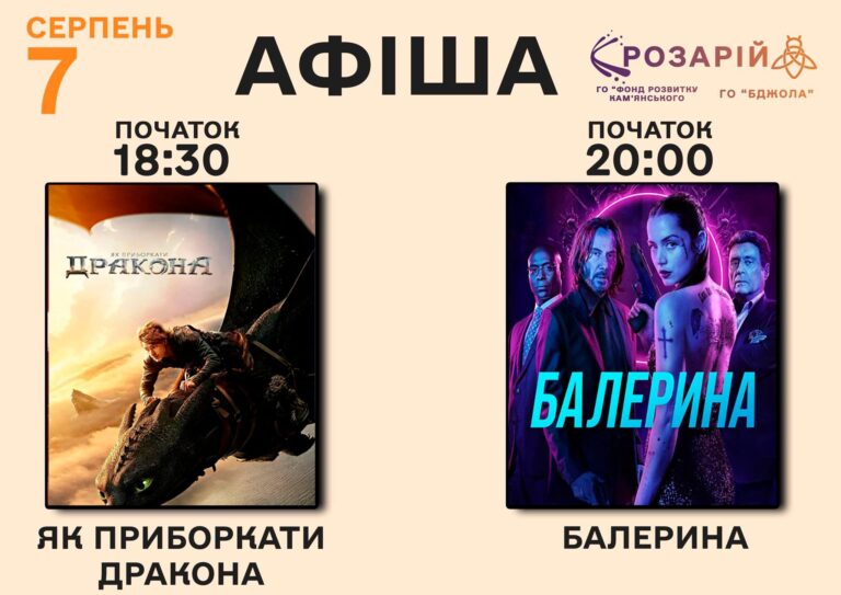 7 августа в четверг в Розарии Каменского состоится очередной киносеанс под открытым небом на котором...