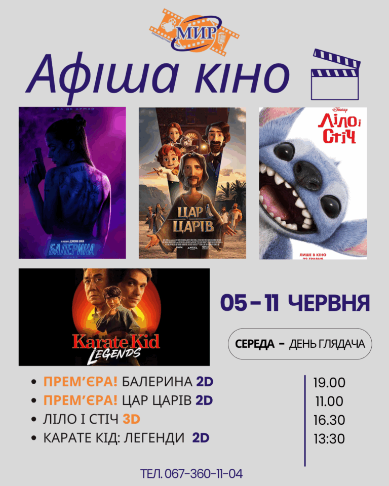 "Балерину" и еще три крутых фильма смотрите в киноконцертном зале „МИР“ с 5 по 11 июня