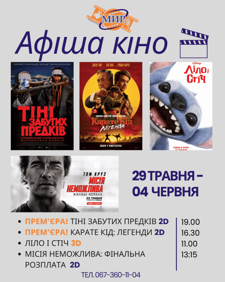 Киноконцертный зал "МИР" с 29 мая по 4 июня приглашает на просмотр лучших фильмов