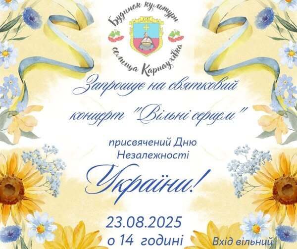 Накануне Дня Независимости Украины состоится праздничный концерт "Свободные сердцем" в Доме культуры поселка Карнауховка. "Приходите...
