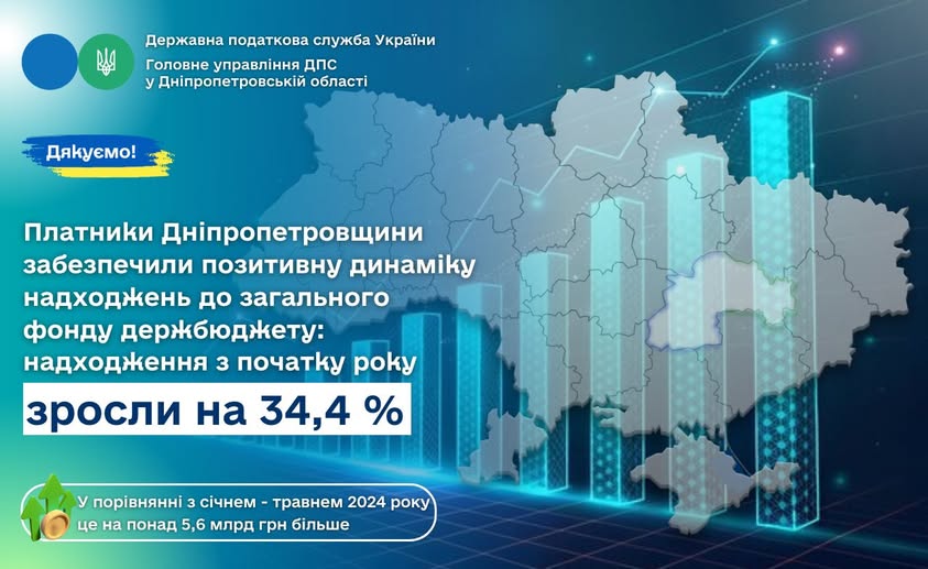 Более 22 млрд грн: плательщики Днепропетровщины уже уплатили на 35% больше налогов, чем в начале 2024 года