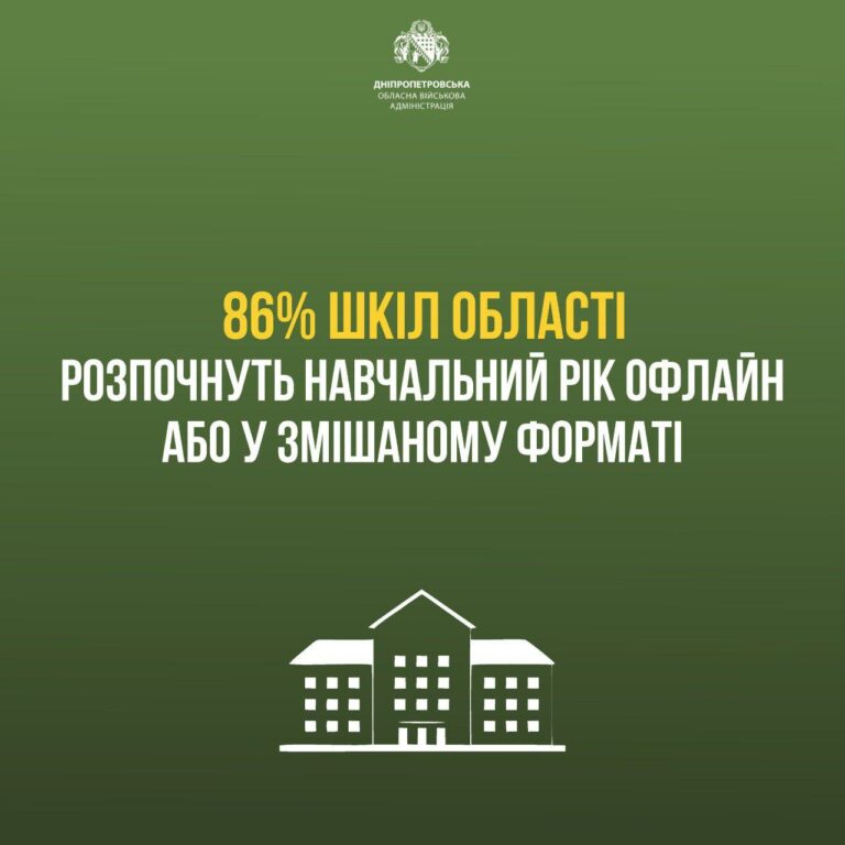 86% учреждений среднего образования Днепропетровщины будут работать офлайн и в смешанном формате