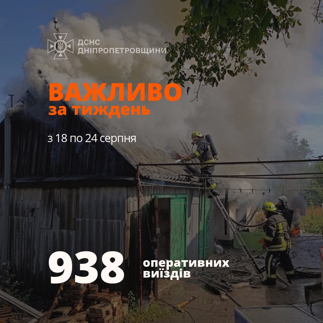 Прошлая неделя оказалась невероятно сложной для спасателей Днепропетровской области. Всего в период с 18 по 24 августа подразделения ГСЧС области 938 раз выезжали на вызовы.
