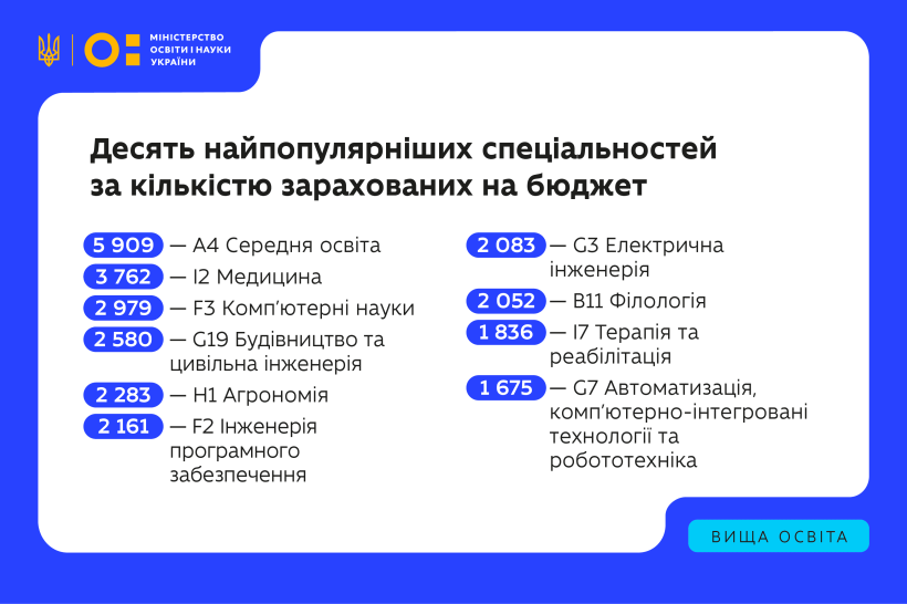 "Каждый и каждая, кто выбирает обучение в украинском университете, делает осознанный выбор — получать образование дома и быть частью будущего Украины. Государство последовательно поддерживает студентов и преподавателей: бюджетные места обеспечивают безвозмездное обучение и стипендии, а гранты частично покрывают оплату контракта …". и укрепление качества образовательного процесса", — отметил министр образования и науки Украины Оксен Лесной.