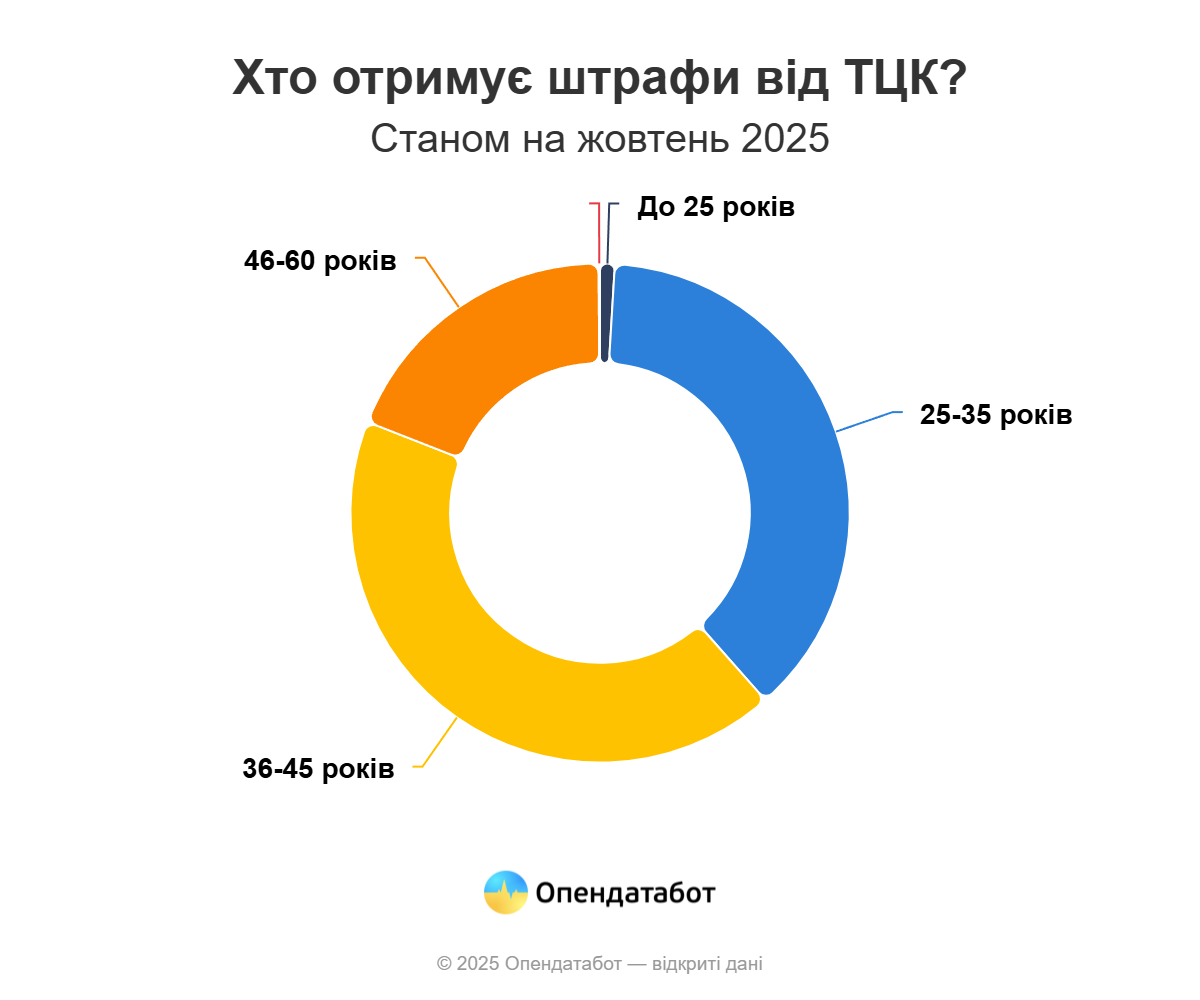 "Подавляющее большинство оштрафованных — мужчины в возрасте от 25 до 45 лет. Именно эта возрастная категория составляет около 80% всех случаев", — отмечают аналитики Опендатабота.