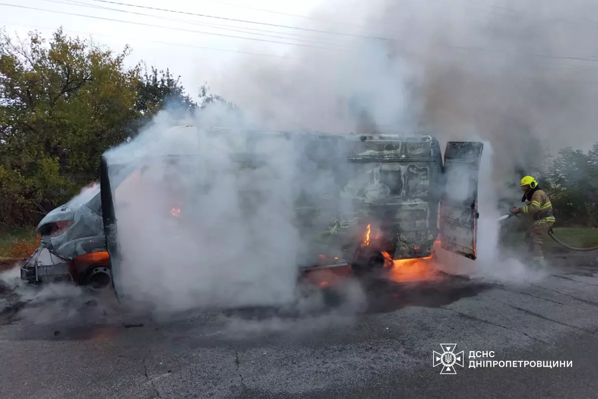 Пострадавших нет: На Днепропетровщине спасатели ликвидировали возгорание грузового микроавтобуса