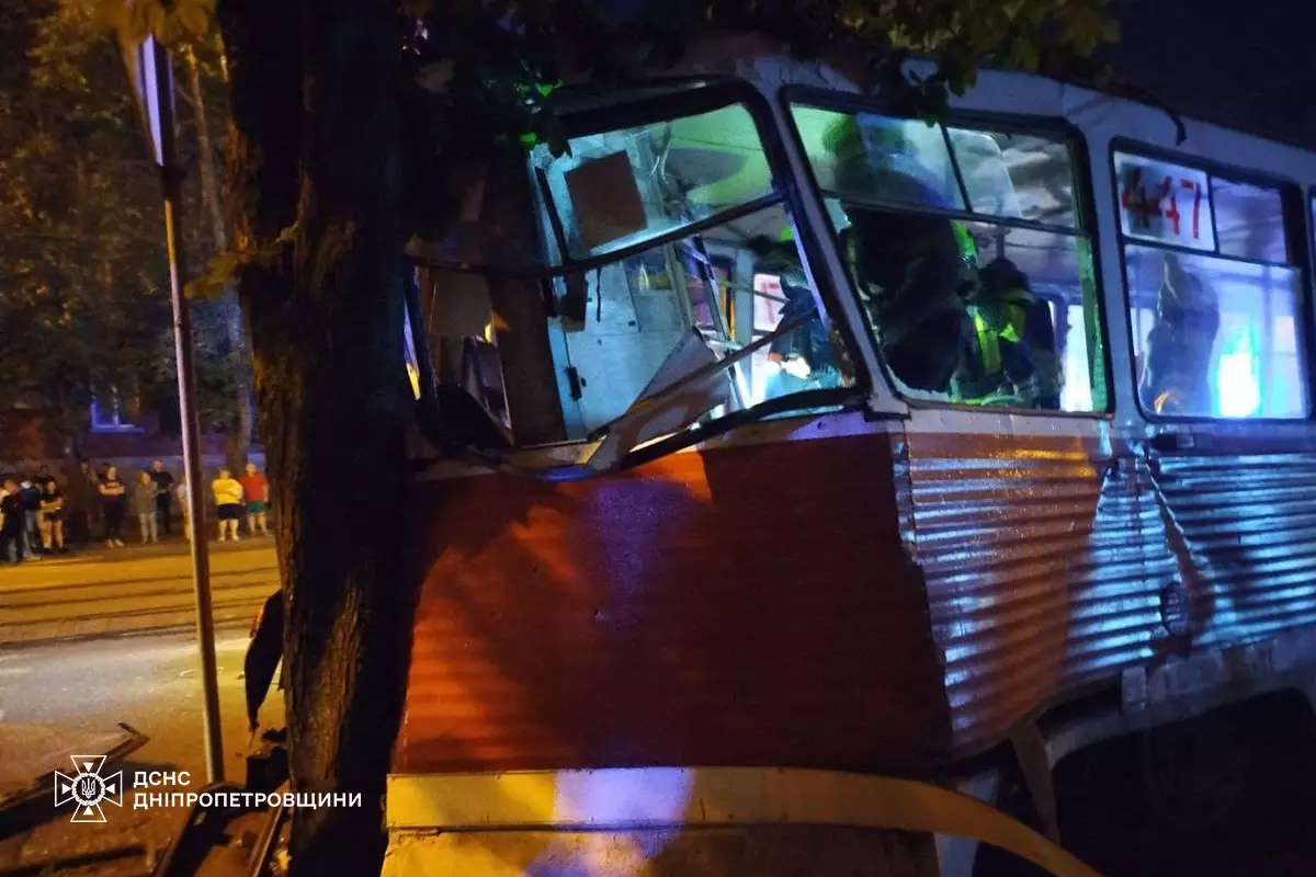 В Кривом Роге трамвай сошел с рельсов и столкнулся с деревом: есть пострадавшие