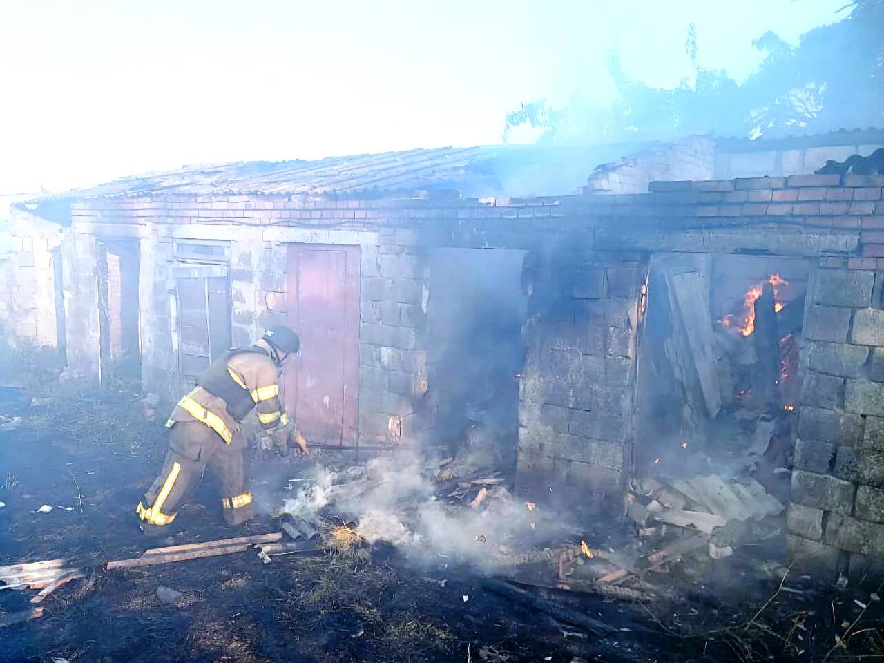 Из-за попадания FPV-дроном по Мировской громаде вчера вечером загорелась хозяйственная постройка. Пламя спасатели потушили. Разбит автомобиль.