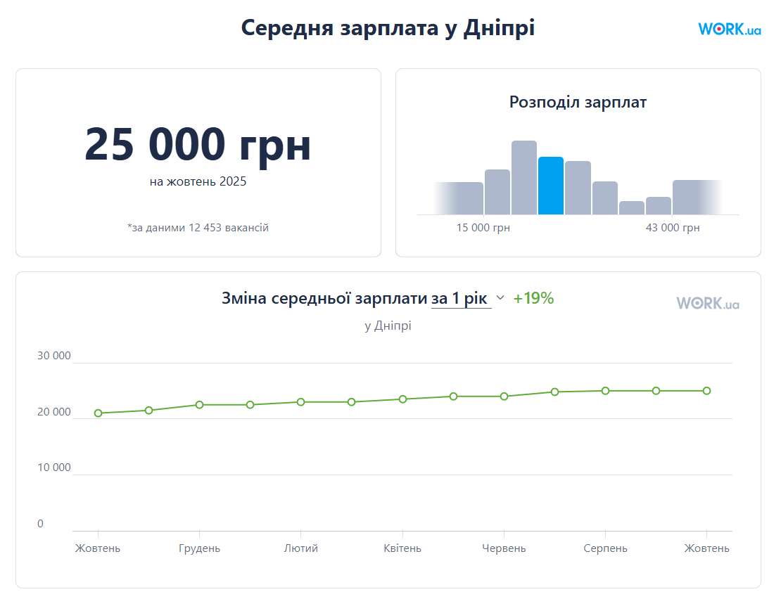 Распределение зарплат колеблется от 15 000 до 43 000 грн. – это широкий диапазон: от среднего уровня до достаточно высоких предложений. А некоторые профессии демонстрируют значительный рост за год: