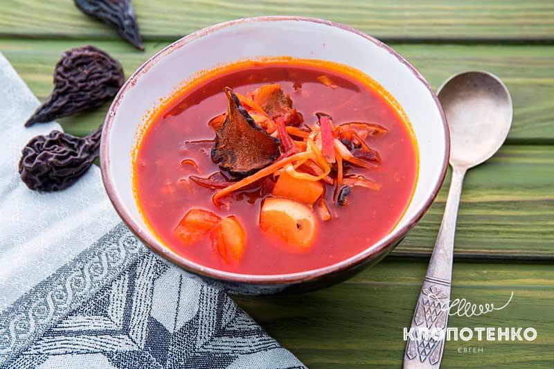 - По желанию добавьте соли и перца по своему вкусу. Также порежьте мелко чеснок и всыпьте в готовый постный борщ.