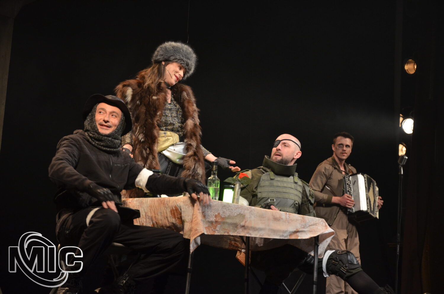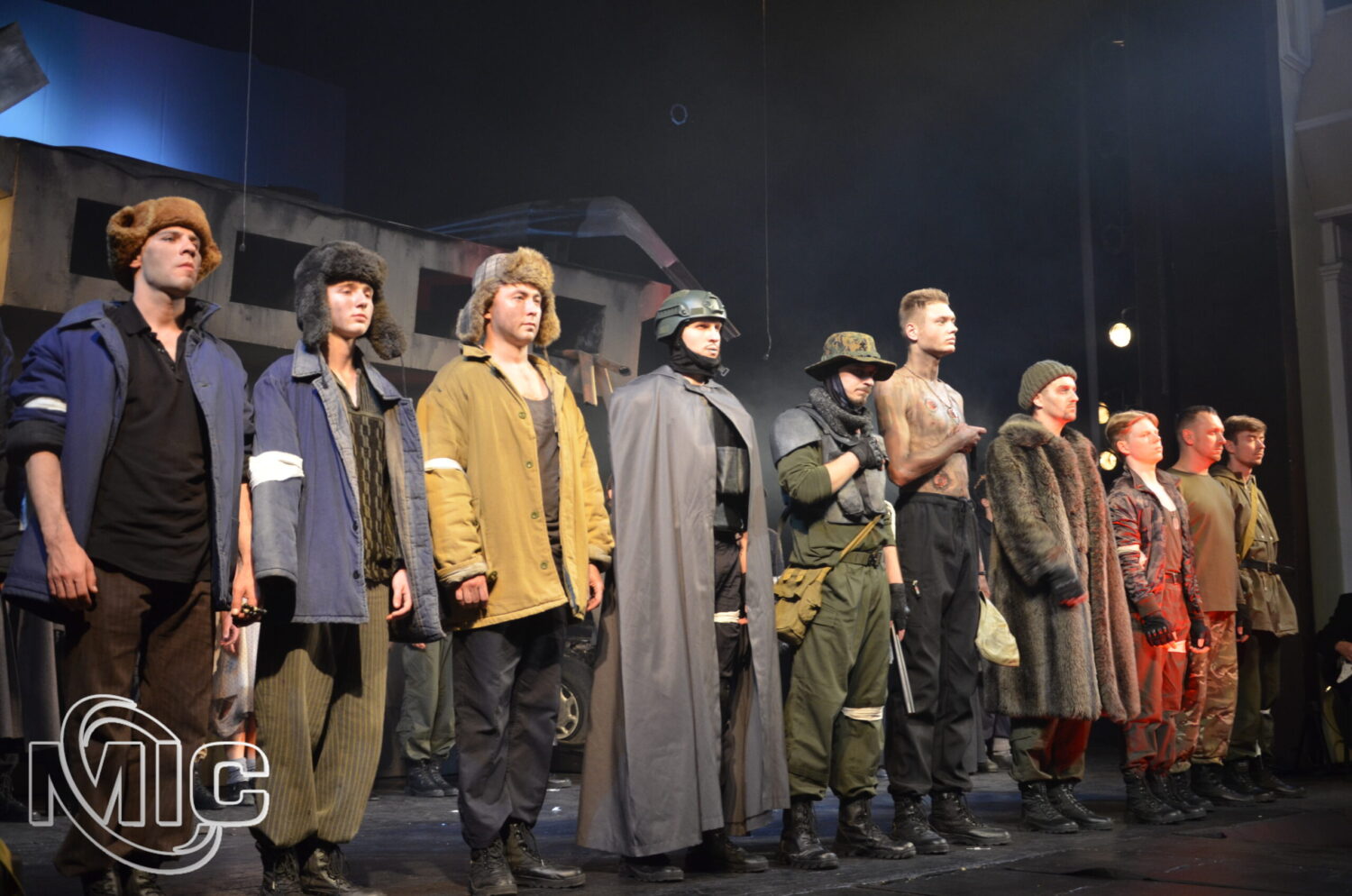 3.Как авторы спектакля умудрились так органично разместить на одной сцене масштабные декорации с макетом разрушенного Ирпенского моста и настоящими автомобилями и оркестр театра так, что при этом осталось еще много места для актеров?