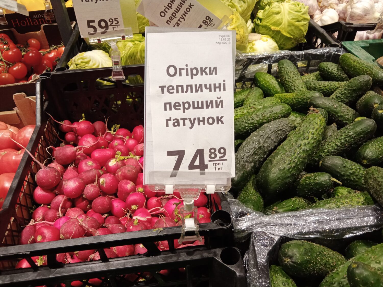| Огурцы | 65-80 грн/кг | 74,89 грн/кг (тепличные)