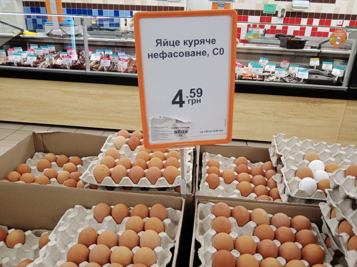 | Яйца куриные | 45-60 грн/10 шт | 3,93 грн/шт (1 кат.) | 4,59 грн/шт (кат. С0)