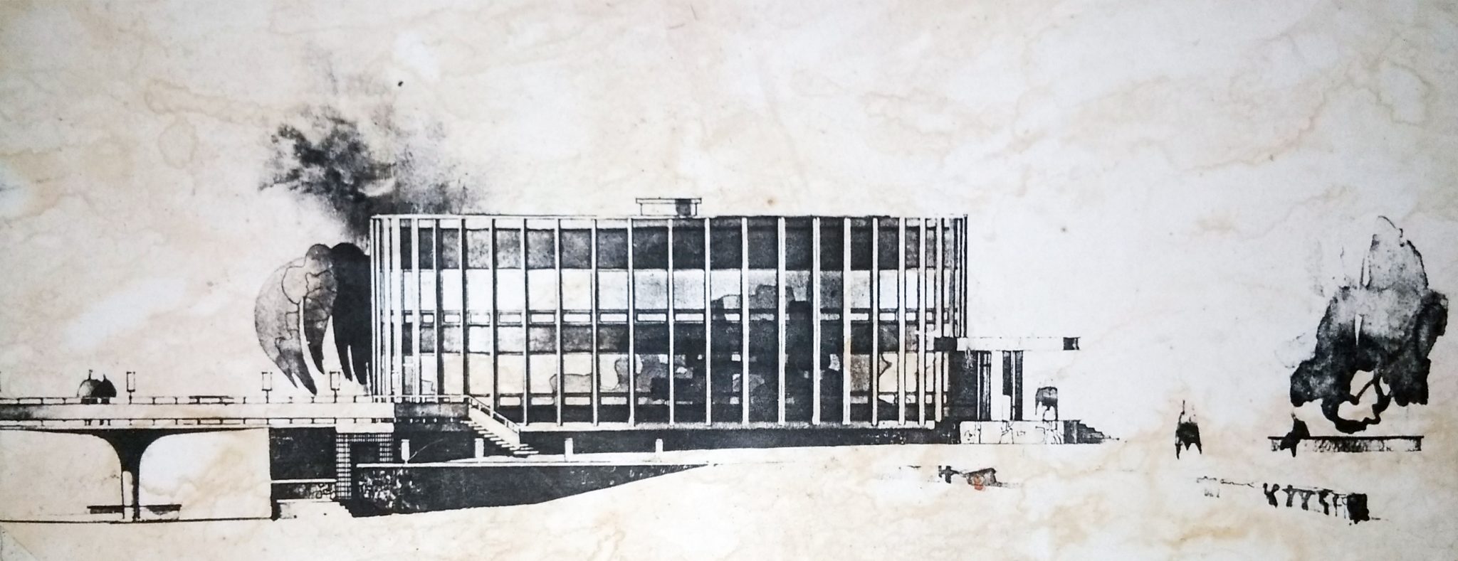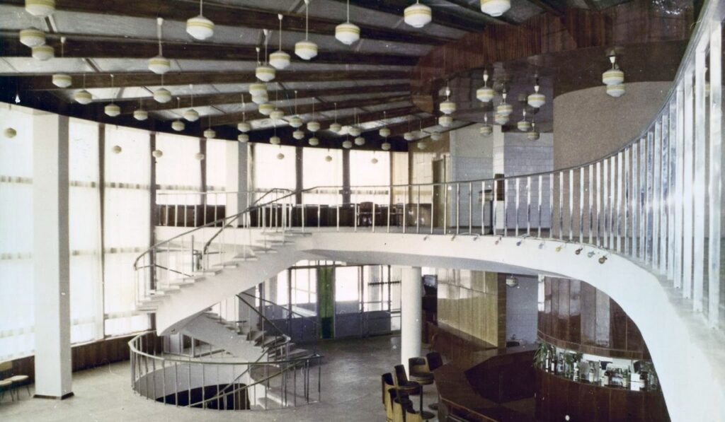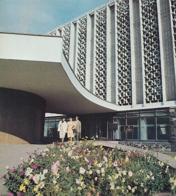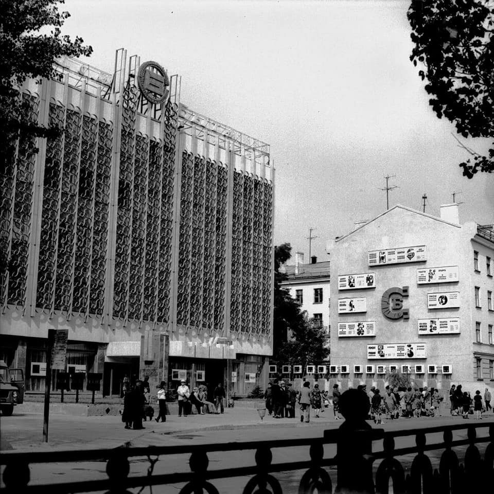 Открытый в 1978 году, он стал образцом функциональной советской архитектуры. Солнцезащитная решетка, бирюзовый стемалит, медные панно, мраморные интерьеры – это создавало атмосферу модерна и комфорта. Заведение стало центром бытовых услуг города.