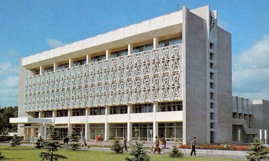 Здание, построенное в 1979 году, является примером позднего советского модернизма. Монументальные фасады, башня с часами и гармоничное сочетание архитектуры с окружающей средой сделали его одним из самых выразительных сооружений Каменского.