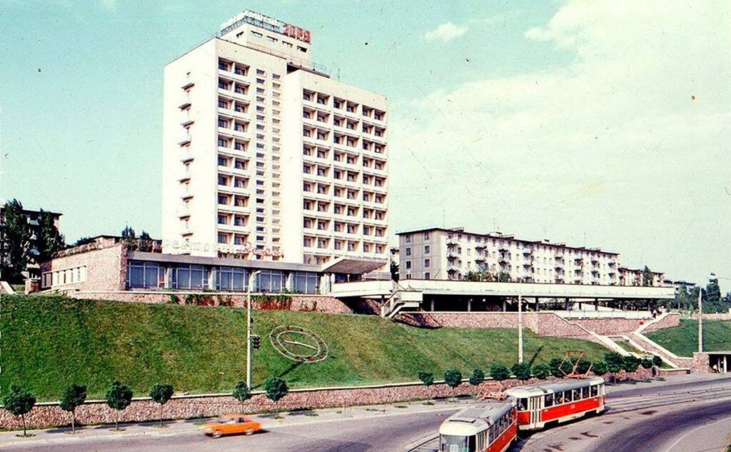 Построенная в 1974 году гостиница стала настоящим украшением Каменского. Его соорудили на холме с видом на главную магистраль города. Архитектурное решение включало в себя террасу, пандус, цветочные часы, декоративные бассейны и гранитные лестницы. В 2020 году здание реконструировали – ныне это современный Reikartz Hotel Kamyanske .
