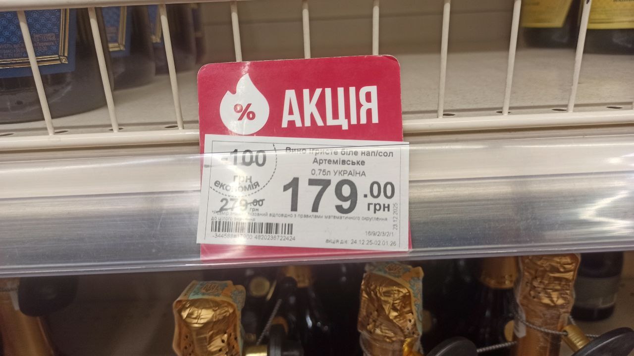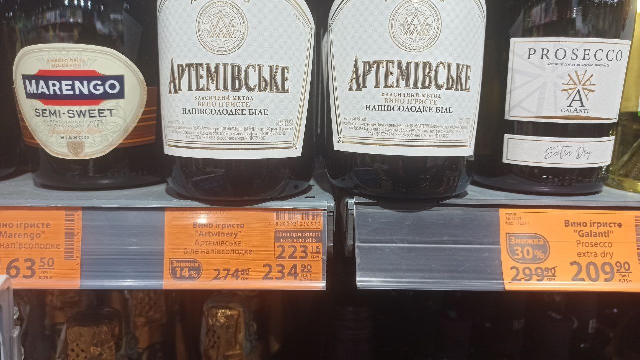 В этом году мы решили выяснить, во сколько обойдется жителям Каменского подготовка к праздничному тосту. Для мониторинга мы выбрали "золотой стандарт" многих украинских застолий — Вино игристое ArtWinery Артемовское (белое выдержанное полусладкое, 10-13,5%).