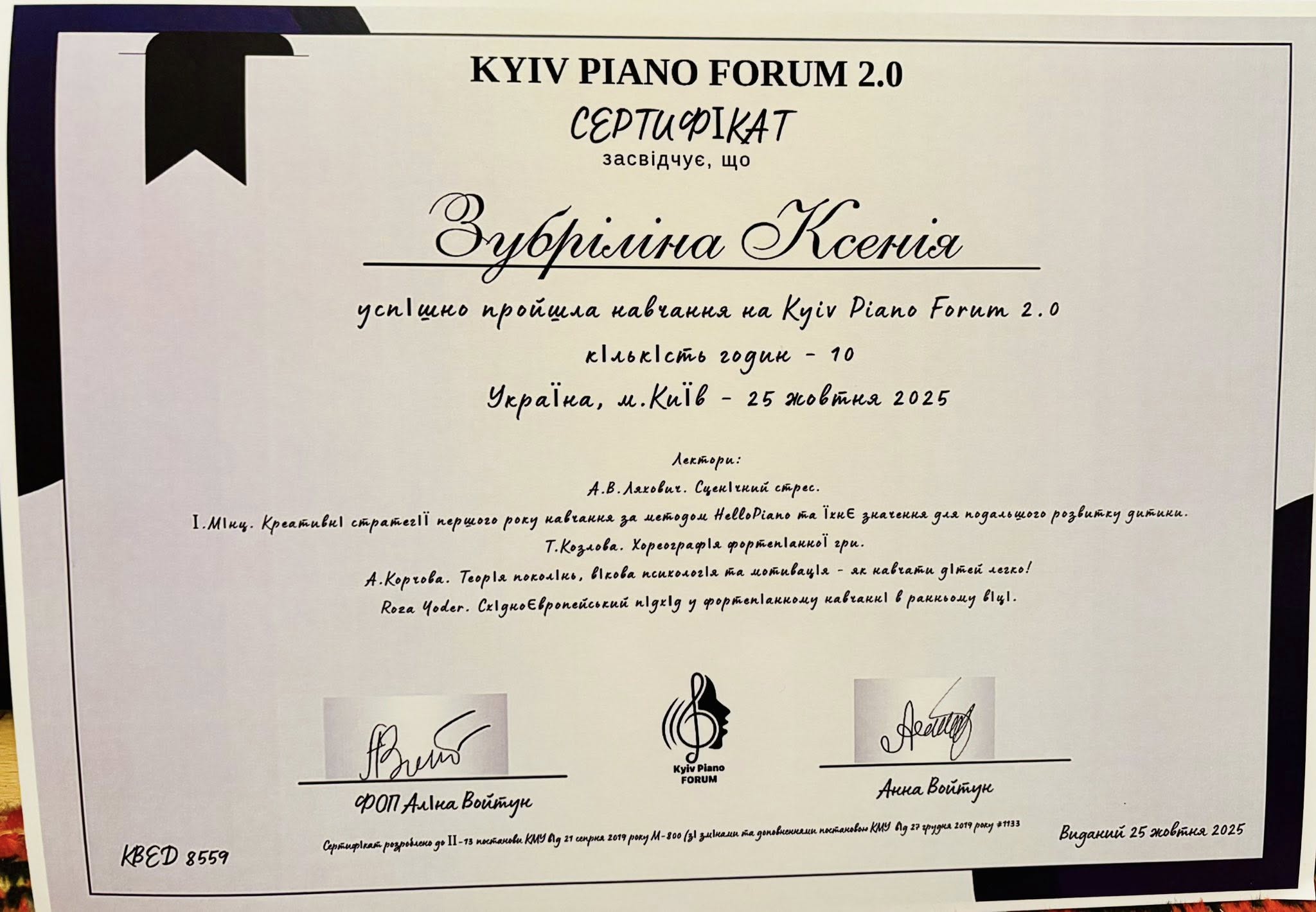 25 октября директор Каменской школы искусств № 2 Ксения Зубрилина приняла участие в Международной конференции преподавателей фортепиано "KYIV PIANO FORUM", которая состоялась в Киеве.