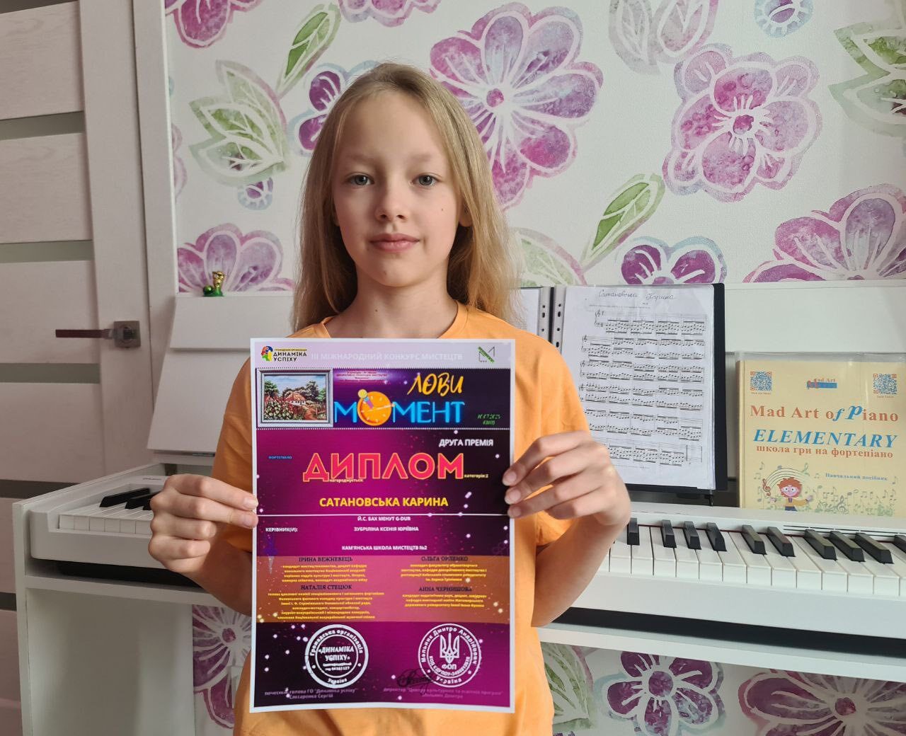 И поделились приятной новостью: ученица фортепианного отдела Карина Сатановская приняла участие в номинации "Фортепиано" и получила диплом II премии, продемонстрировав жюри полифоническое произведение Иоганна Себастьяна Баха "Менуэт G-dur".