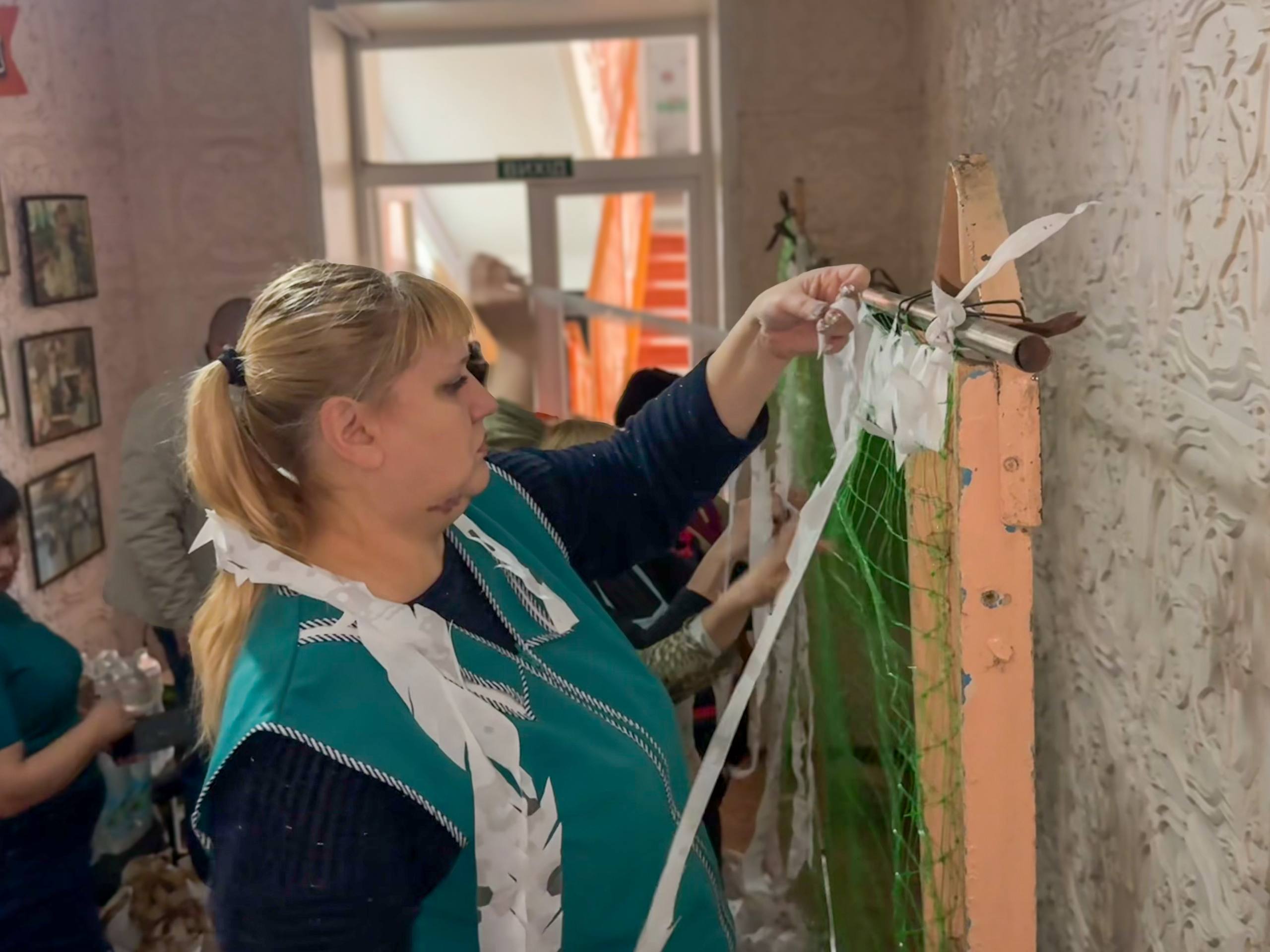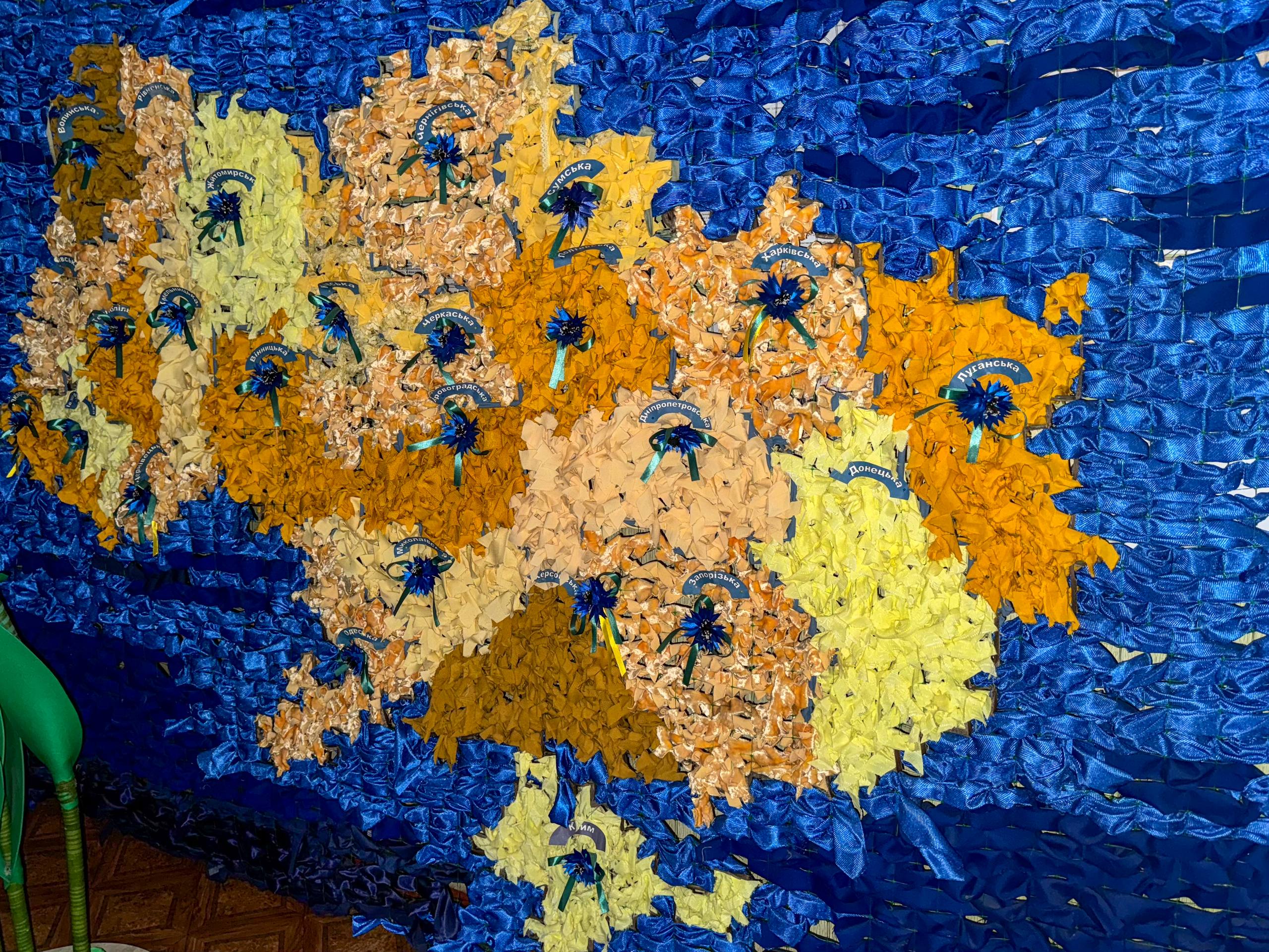 Воспитатели и родители садика активно плетут маскировочные сетки, а также создали уникальную карту Украины из кусочков различных сеток — символ единства и стойкости нашей страны.