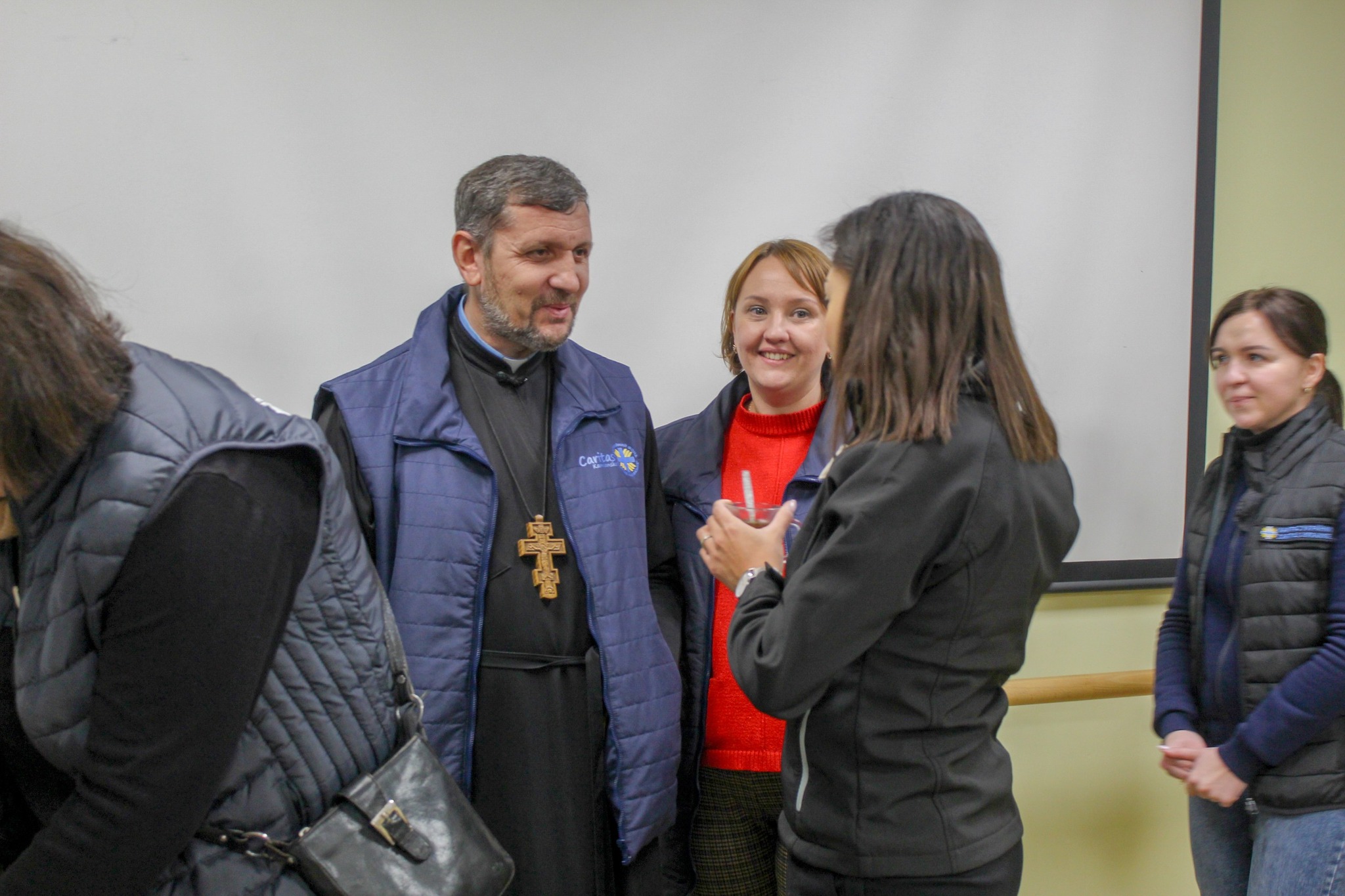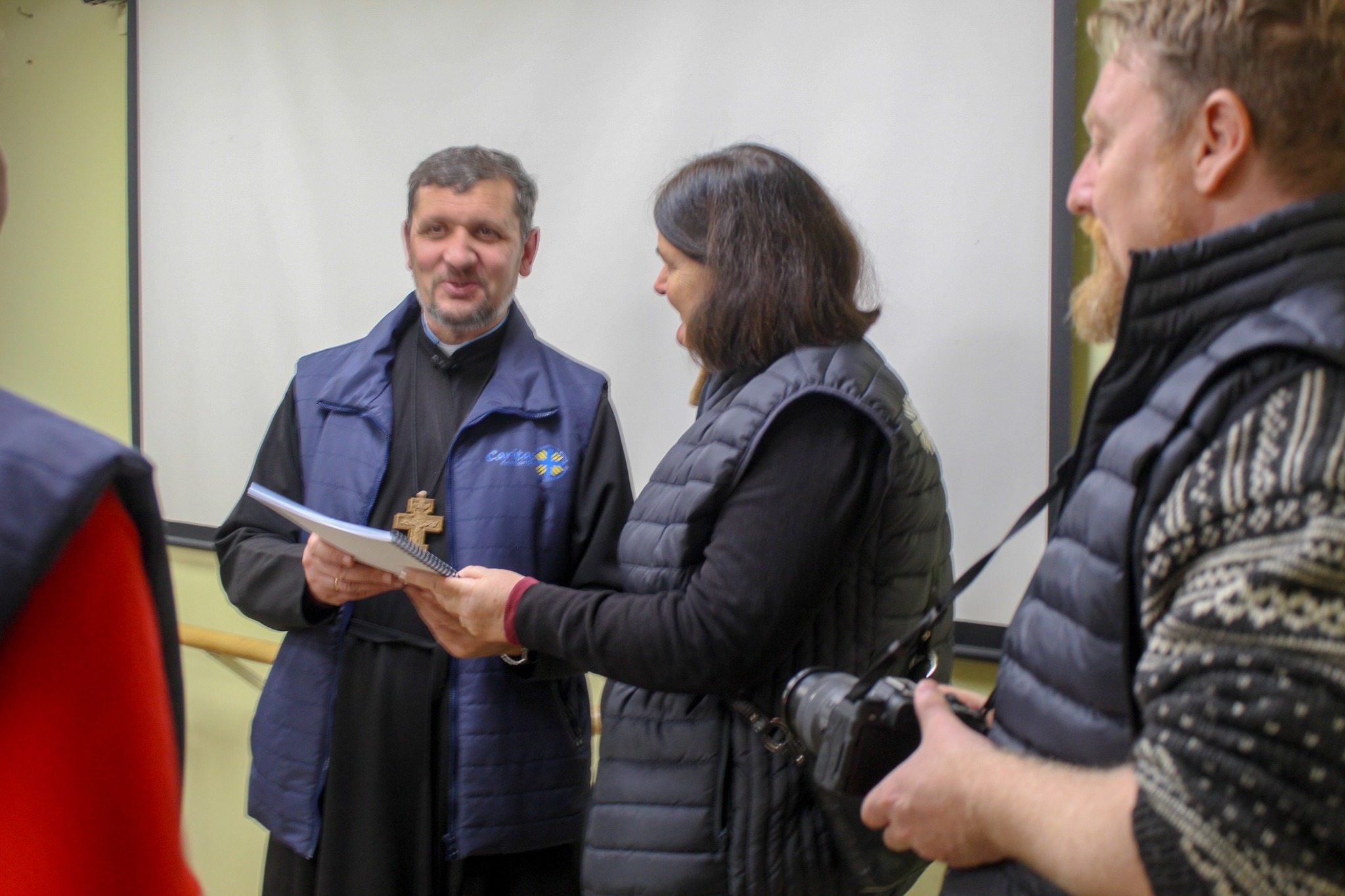 Гостей встретили директор фонда отец Игорь Пагулич и его заместительница Мария Пагулич. Делегация ознакомилась с направлениями работы фонда, достижениями, текущими проектами и вызовами, с которыми сталкивается Каменское, в частности, в сфере поддержки внутренне перемещённых лиц.