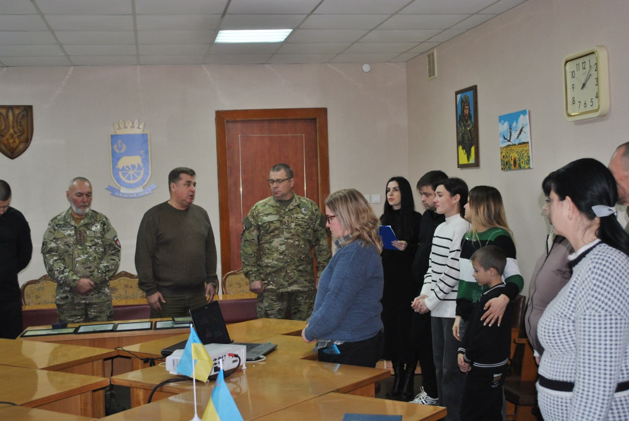 25 ноября в Каменском состоялось вручение государственных и ведомственных наград семьям погибших земляков — Защитников Украины. В мероприятии приняли участие коллектив районной военно-гражданской администрации, глава Каменской РГА Олег Гапич, начальник районного управления Национальной полиции Виталий Твердохлиб и помощник начальника Департамента полиции специального назначения Нацполиции "Лють" Вячеслав Вусинский.