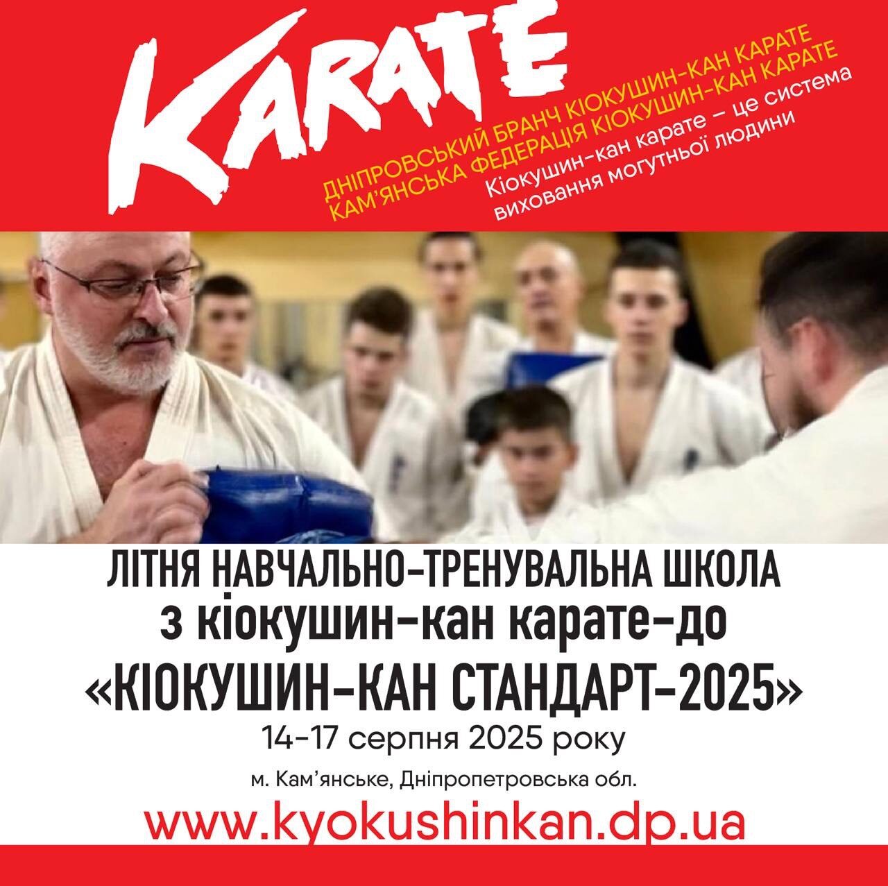 С 14 по 17 августа 2025 года в городе Каменском Днепропетровской области состоится летняя учебно-тренировочная школа Днепровского бранча "КИОКУШИН-КАН СТАНДАРТ – 2025".