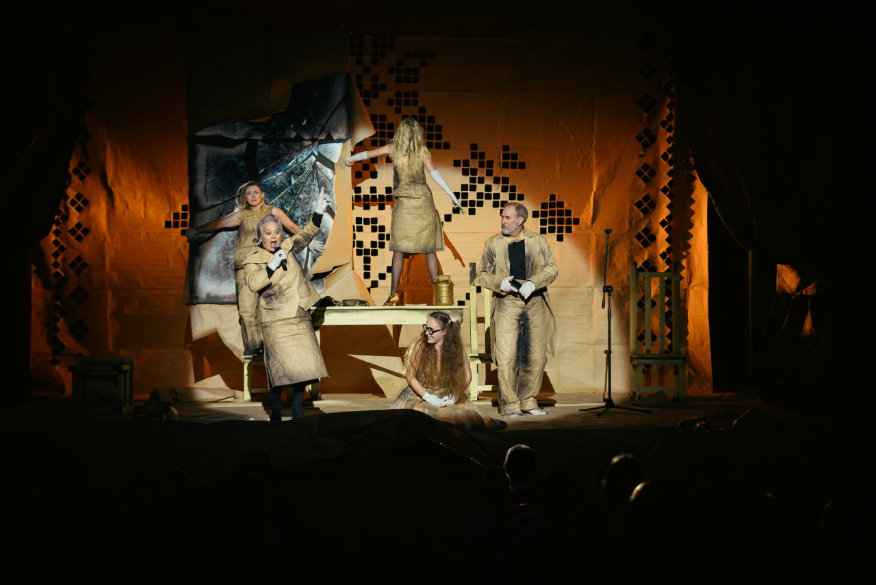 Особого внимания заслуживают потрясающие декорации и костюмы. Художник Олег Татаринов воплотил в жизнь необычную идею, использовав для их изготовления более 1000 метров крафтовой бумаги!