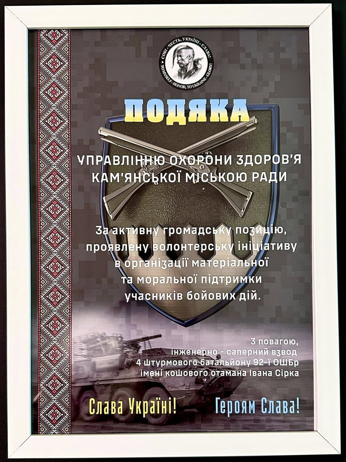 Также управление здравоохранения получило Благодарность от данного военного подразделения.