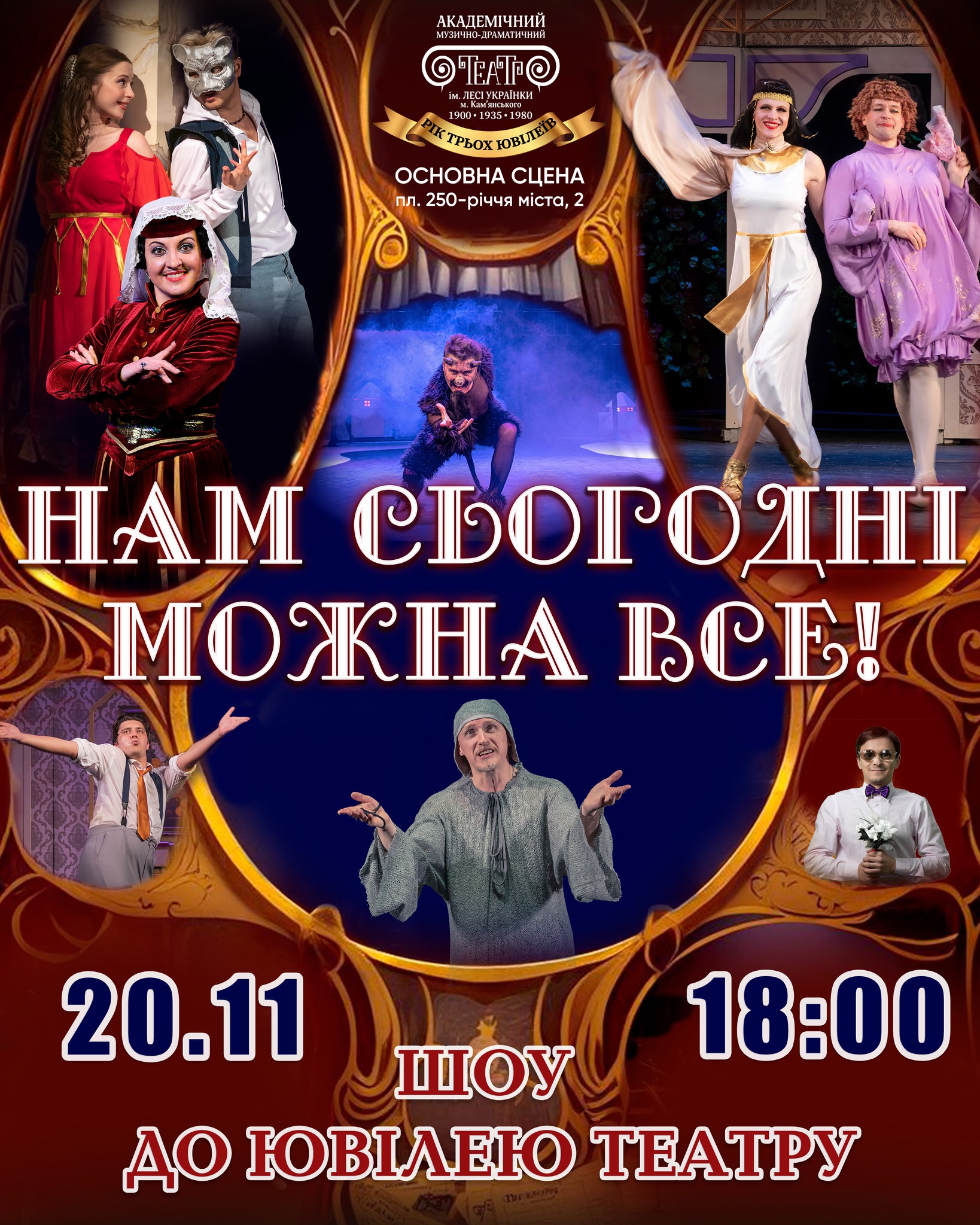 В культурной жизни Каменского приближается событие, которое случается всего раз в жизни! Академический музыкально-драматический театр им. Леси Украинки приглашает зрителей на грандиозное праздничное шоу "Нам сегодня можно всё!", посвященное сразу трем выдающимся юбилеям!