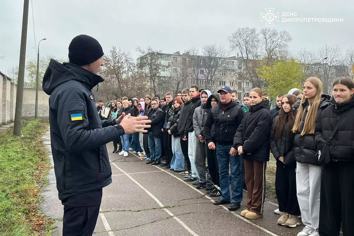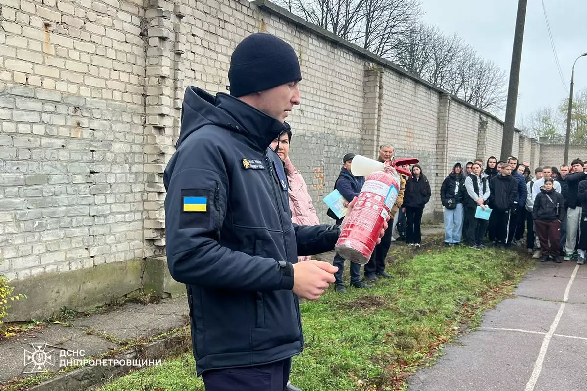 Офицер ДСНС провел практическое тренировочное занятие по безопасности для студентов Каменского профессионального учебного заведения