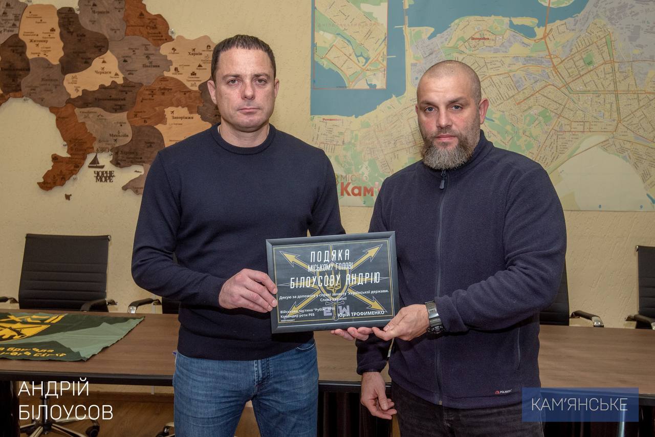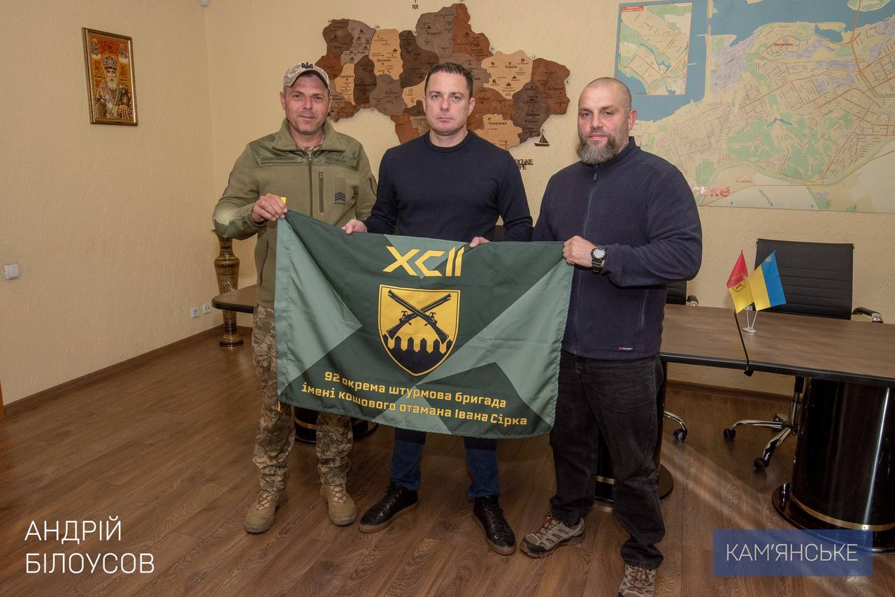 "Встретился с главным сержантом Артёмом Михайличенко, военнослужащим 92-й отдельной штурмовой бригады имени кошевого атамана Ивана Сырка, и руководителем Каменского городского ветеранского пространства Павлом Некритым.