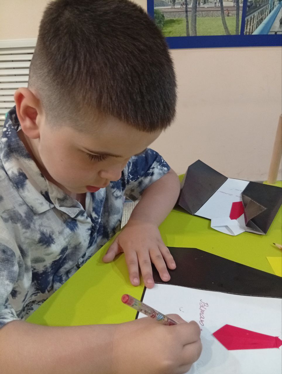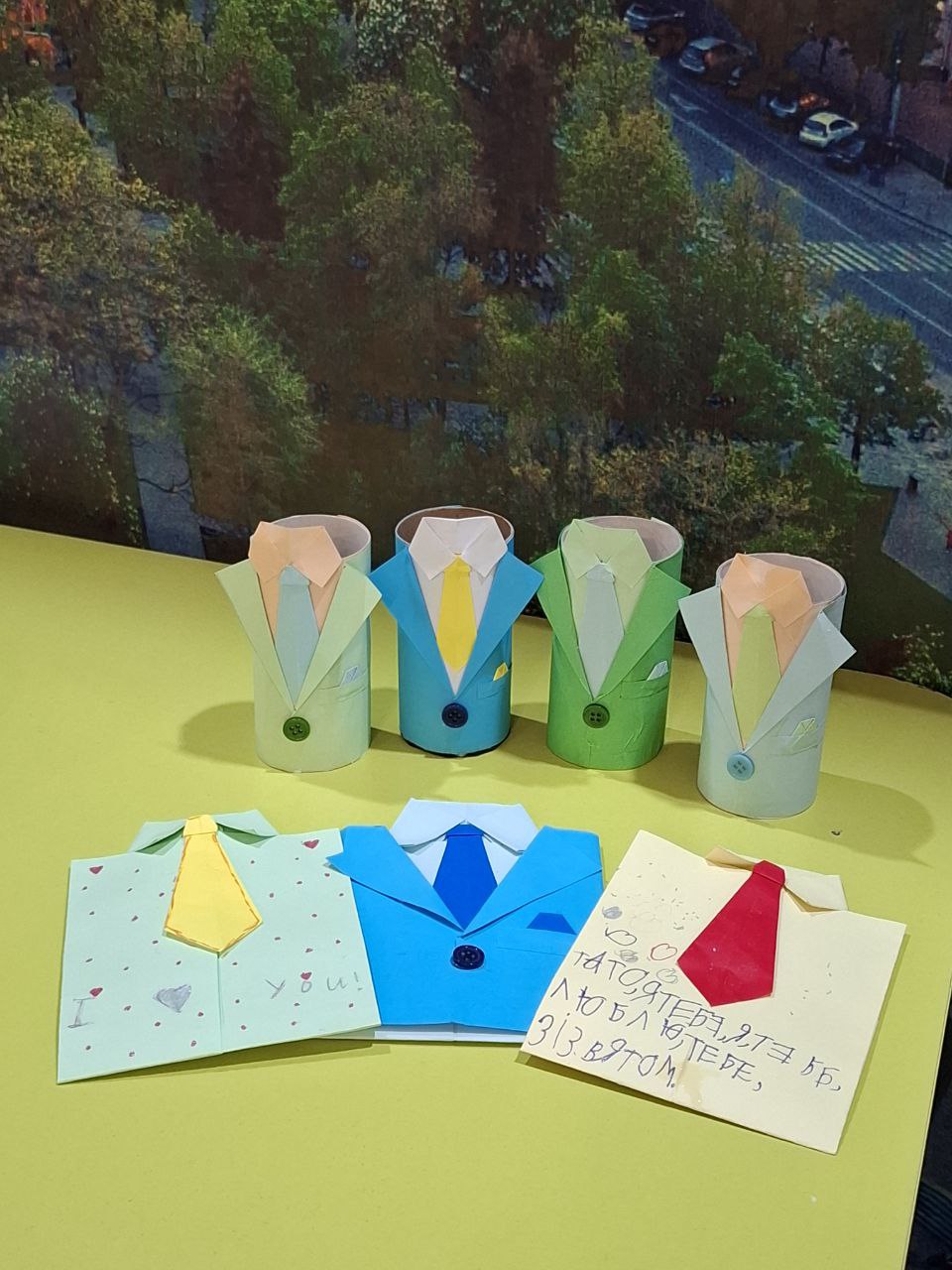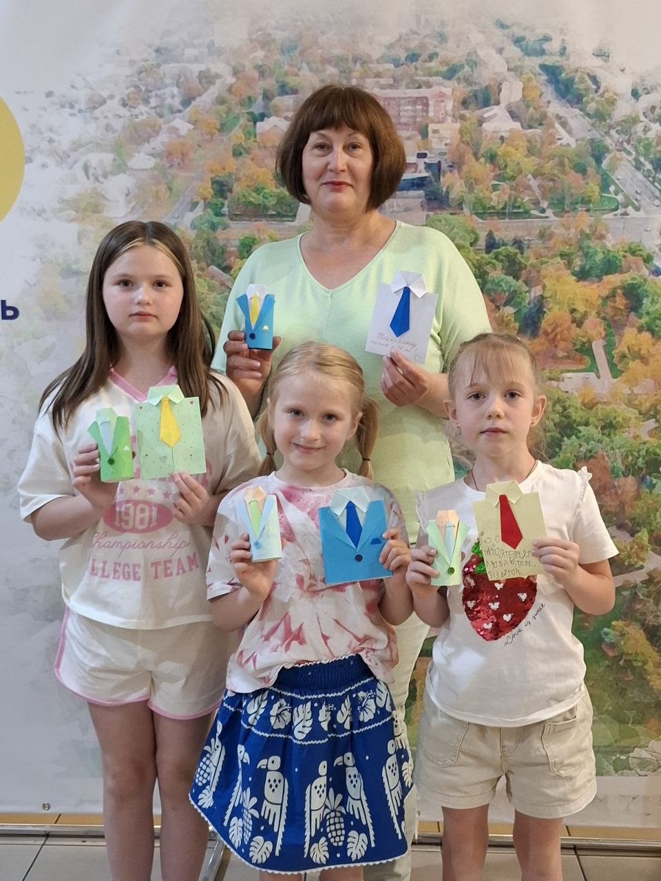В детском пространстве самые маленькие посетители вместе с воспитательницей делали своими руками открытки для пап. Яркие цвета, рисунки и искренние пожелания — каждая открытка стала настоящим проявлением любви и благодарности.